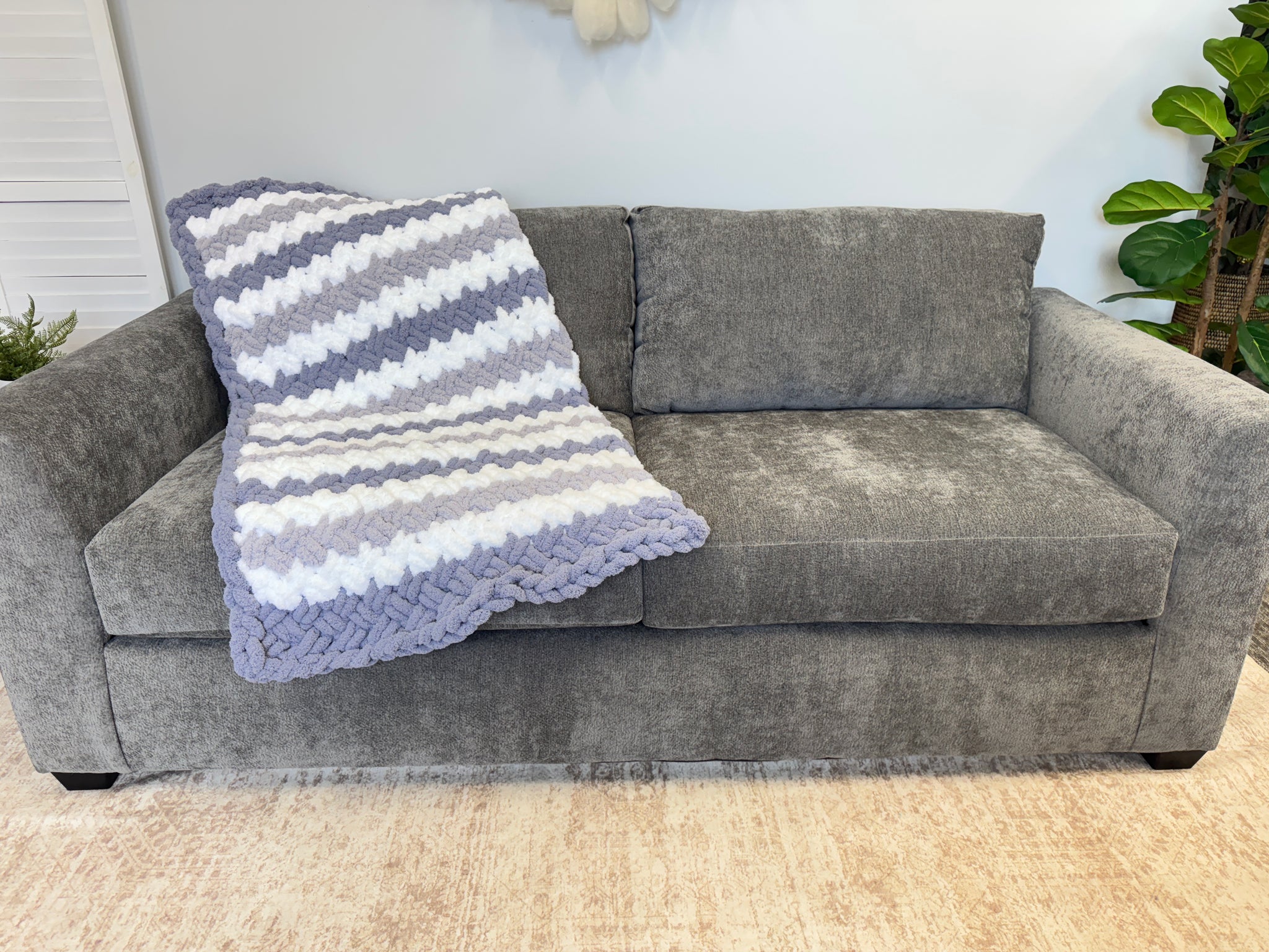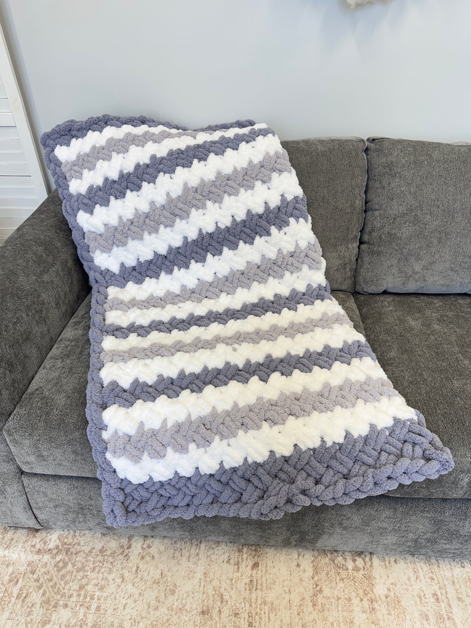 Chunky Chenille Blanket, Criss cross stitch