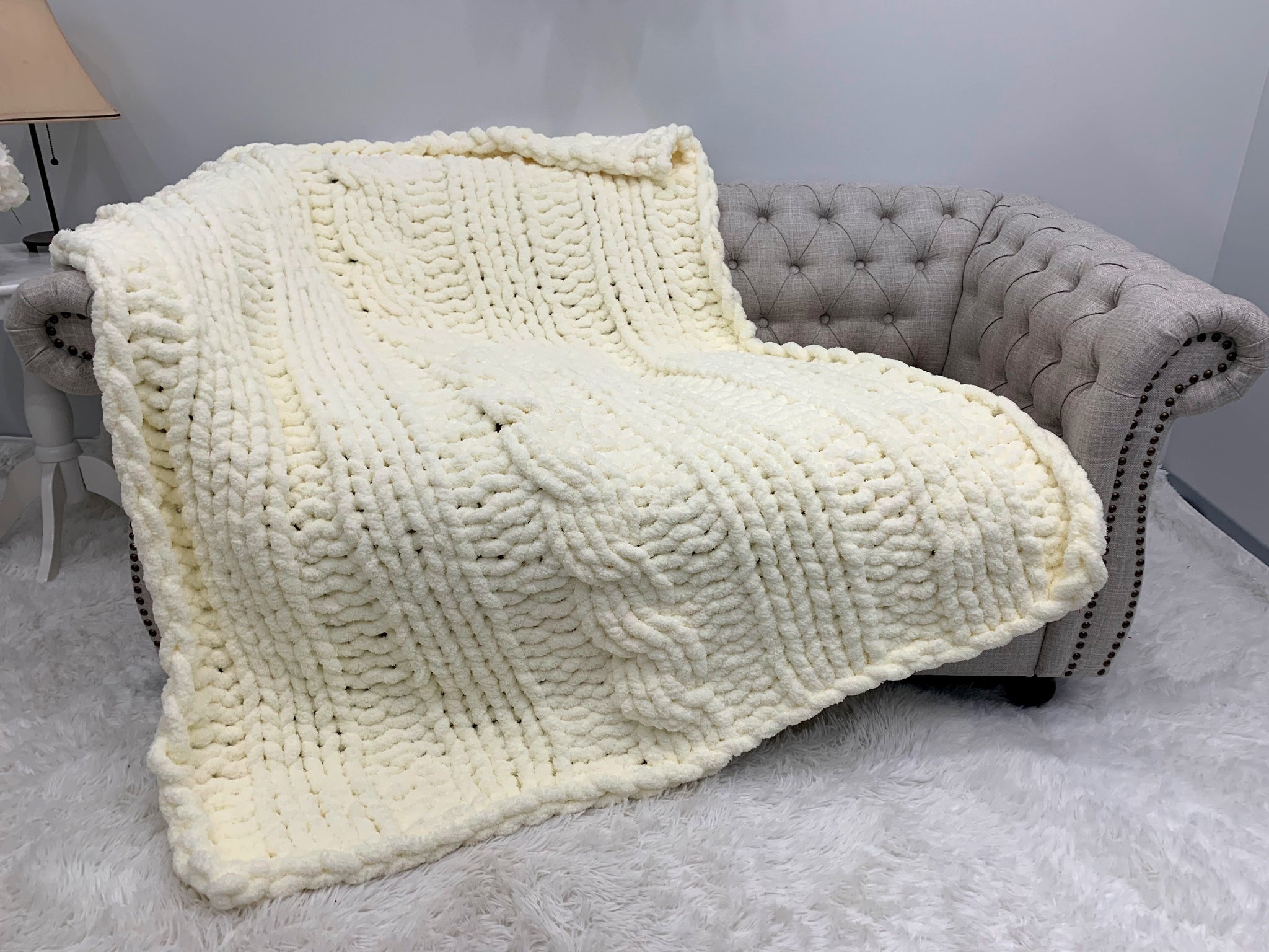 This gorgeous Cable knit blanket made from BeCozi ChunkyÂ