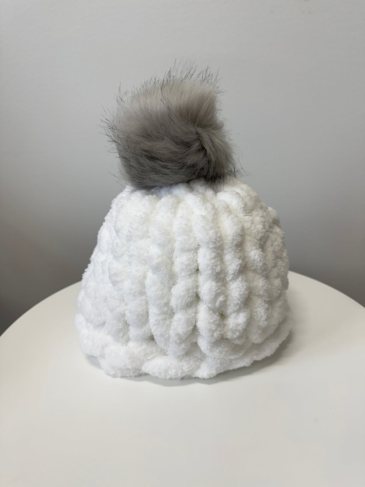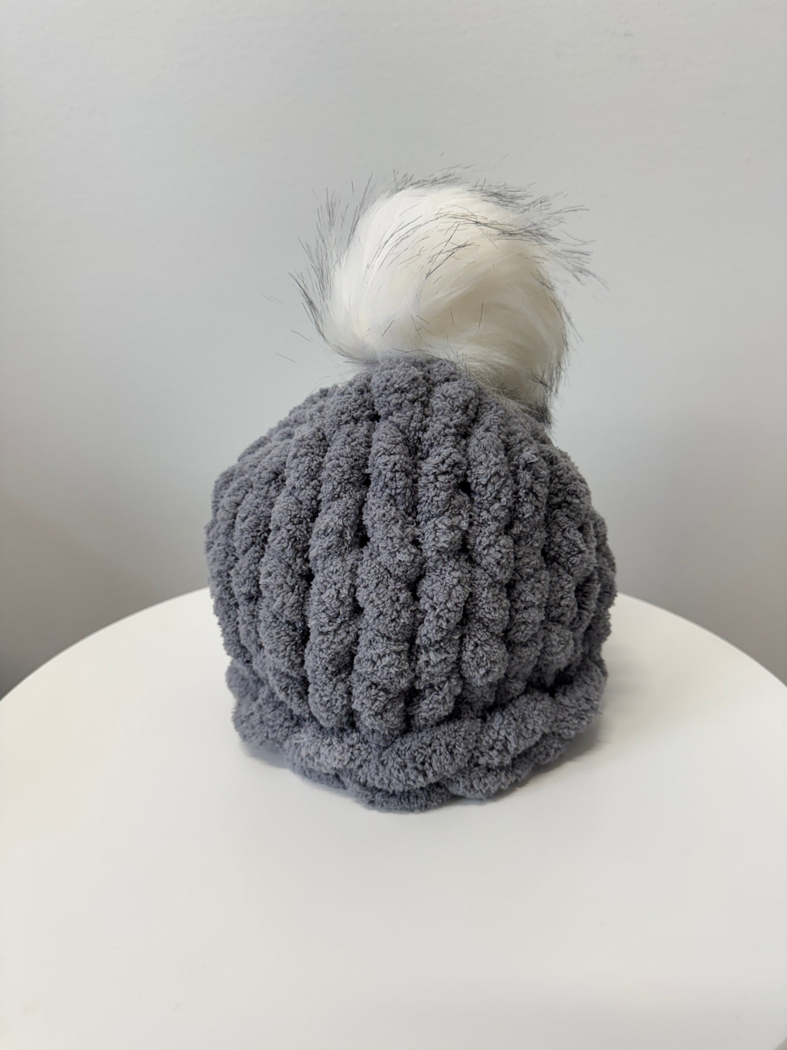 Hat with pom pom, Chunky chenille yarn
