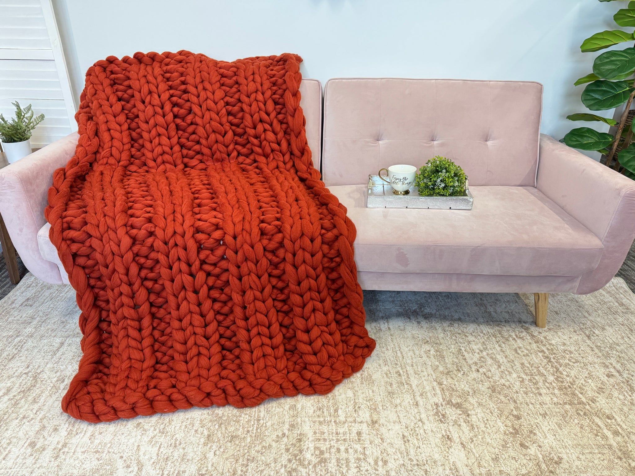 This gorgeous super chunky knit blanket made from 100% Australian Merino wool in double ribbing pattern