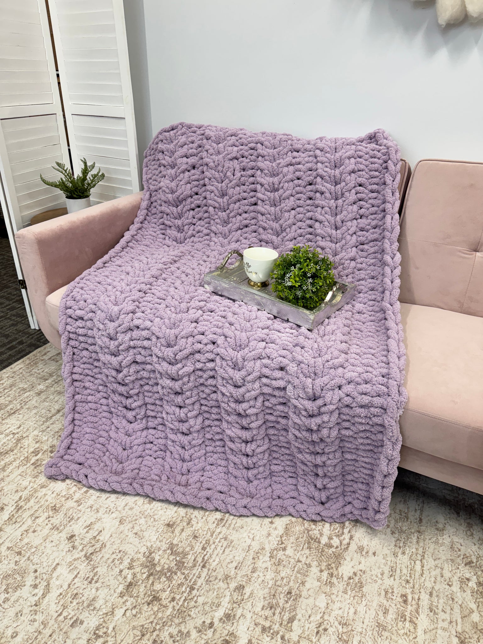 Beautiful, light lavender blanket. Very cozy and warm during the cold nights!