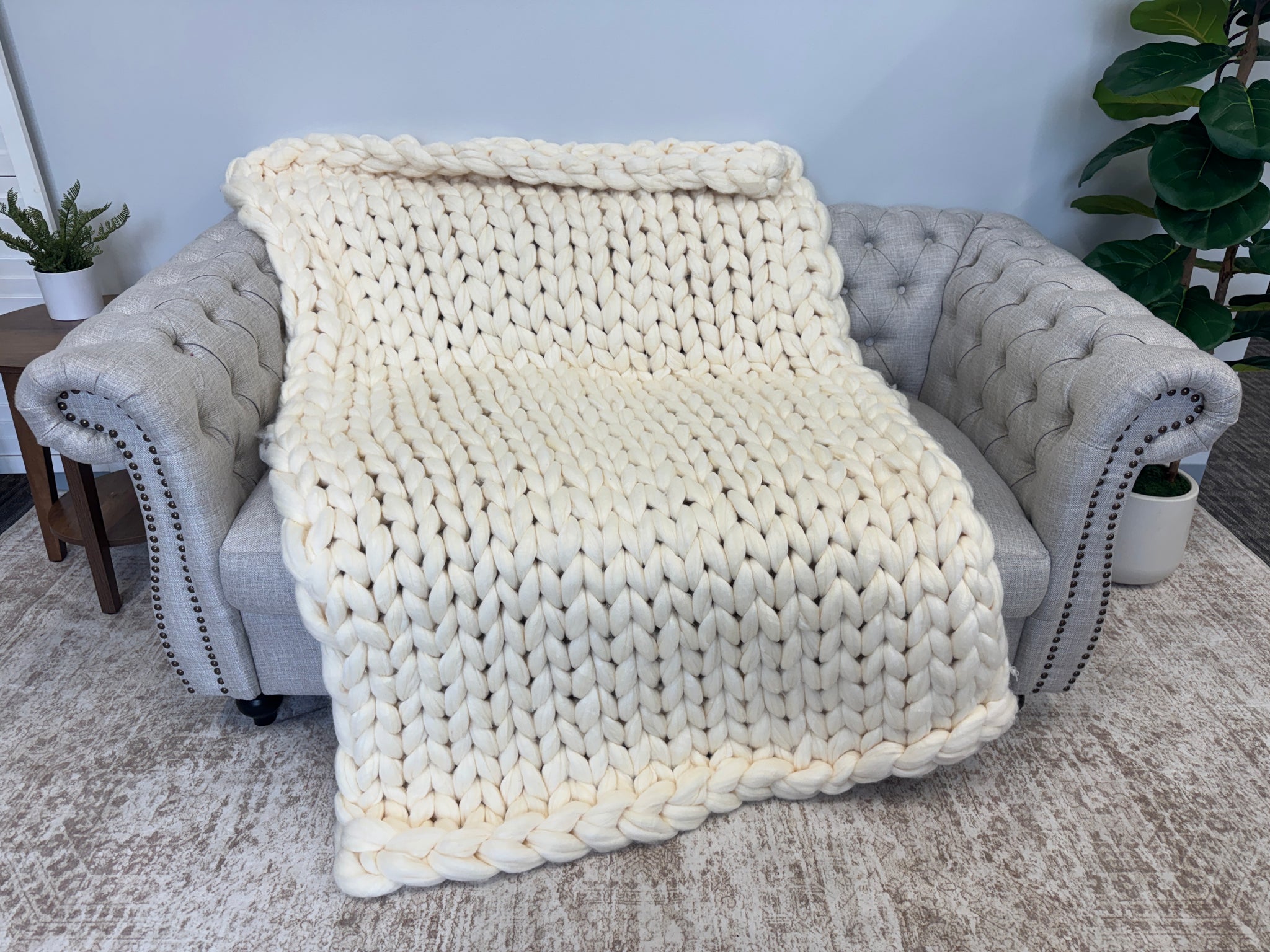 This beautiful, vegan chunky knit blanket is great for your home decor!