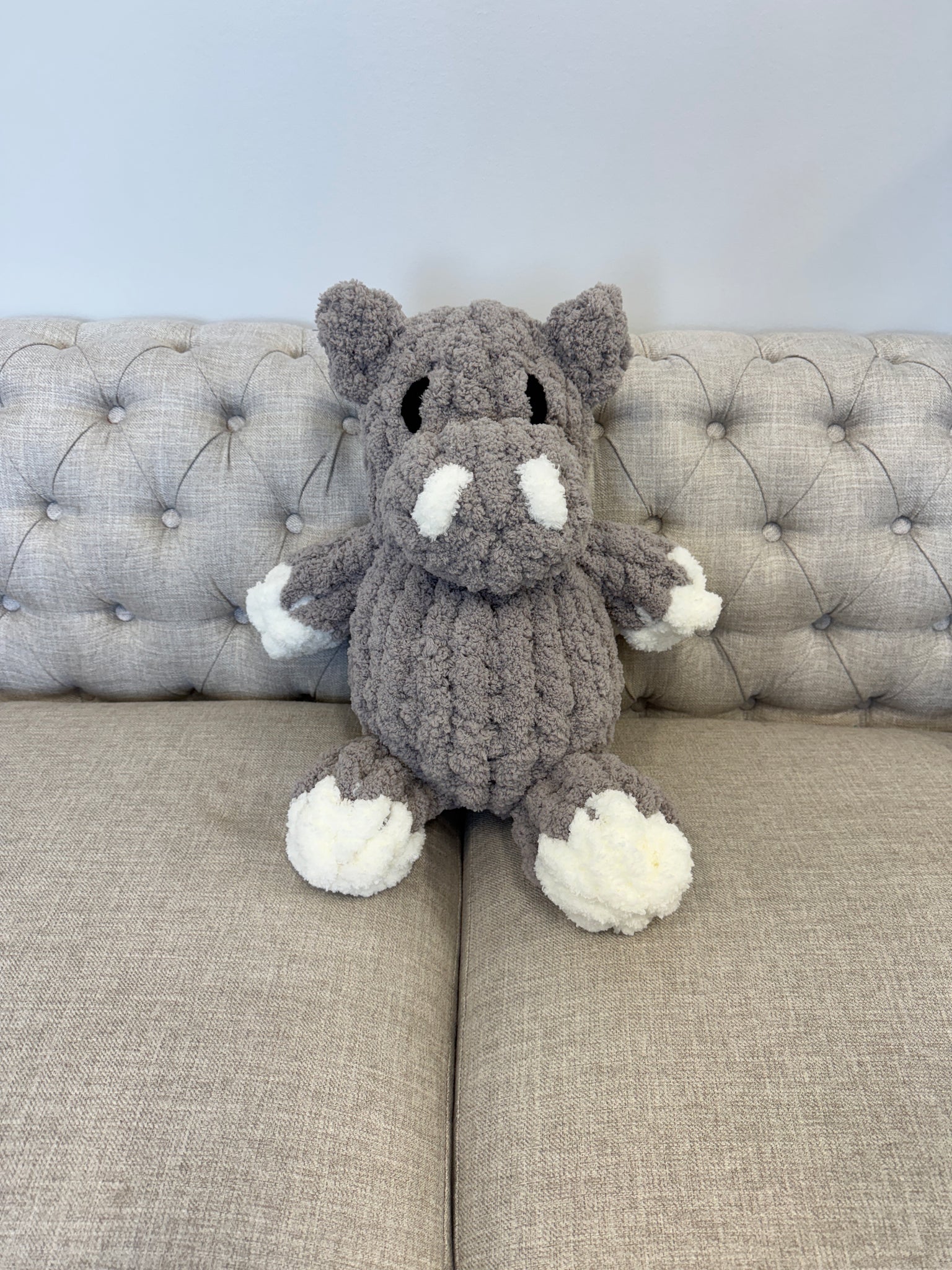 Cutest Hippo Hand knitted with BeCozi Jumbo chenille yarn