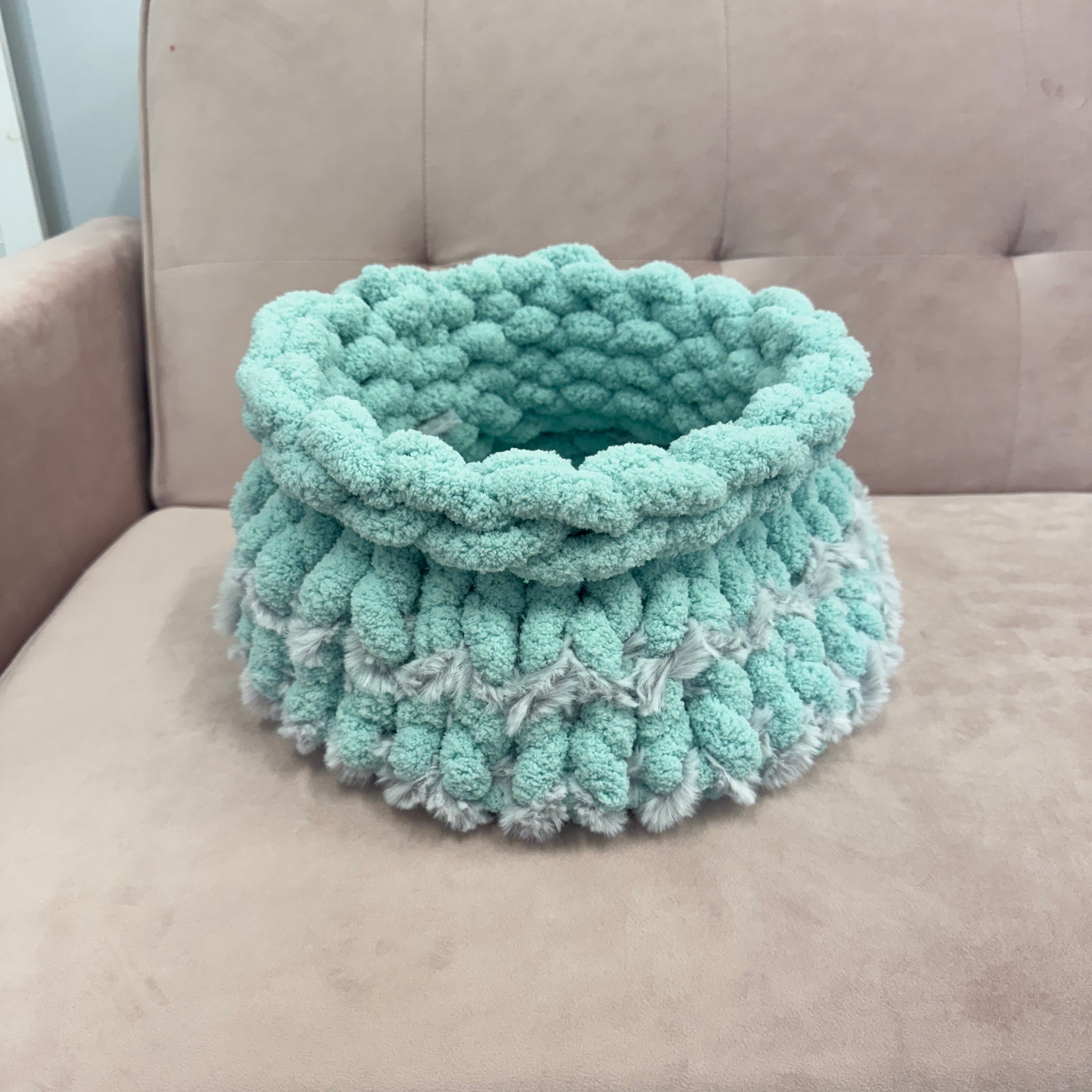 The cutest cat bed made with BeCozi Chunky Chenille, Misty Green