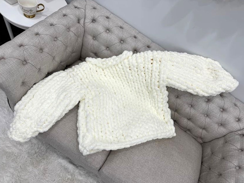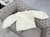 This cute Cardigan is Hand knitted with our Chunky chenille yarn with Merino Wool border on the collar.
