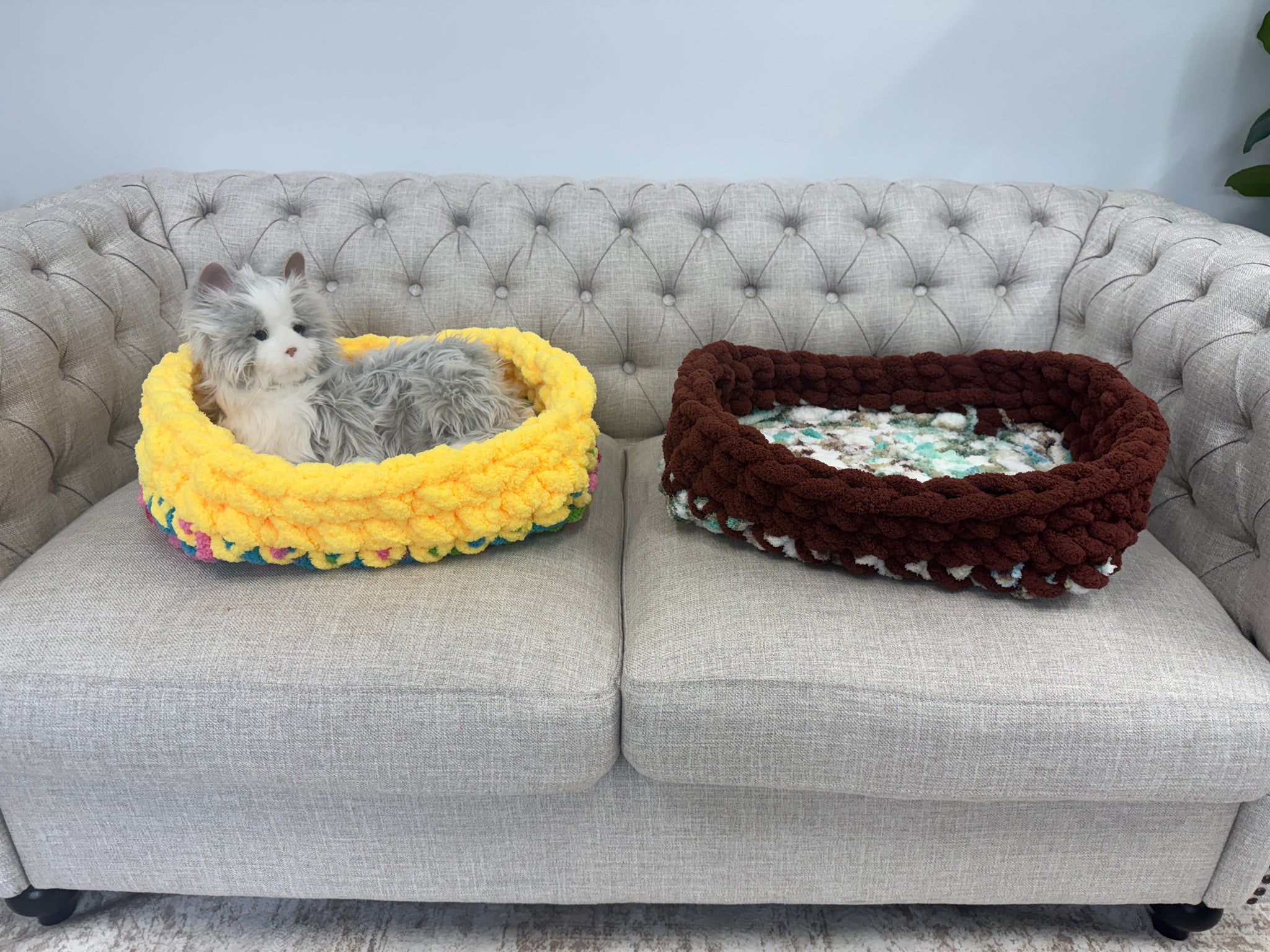The cutest cat bed made with BeCozi Chunky Chenille. Only one of each color available!