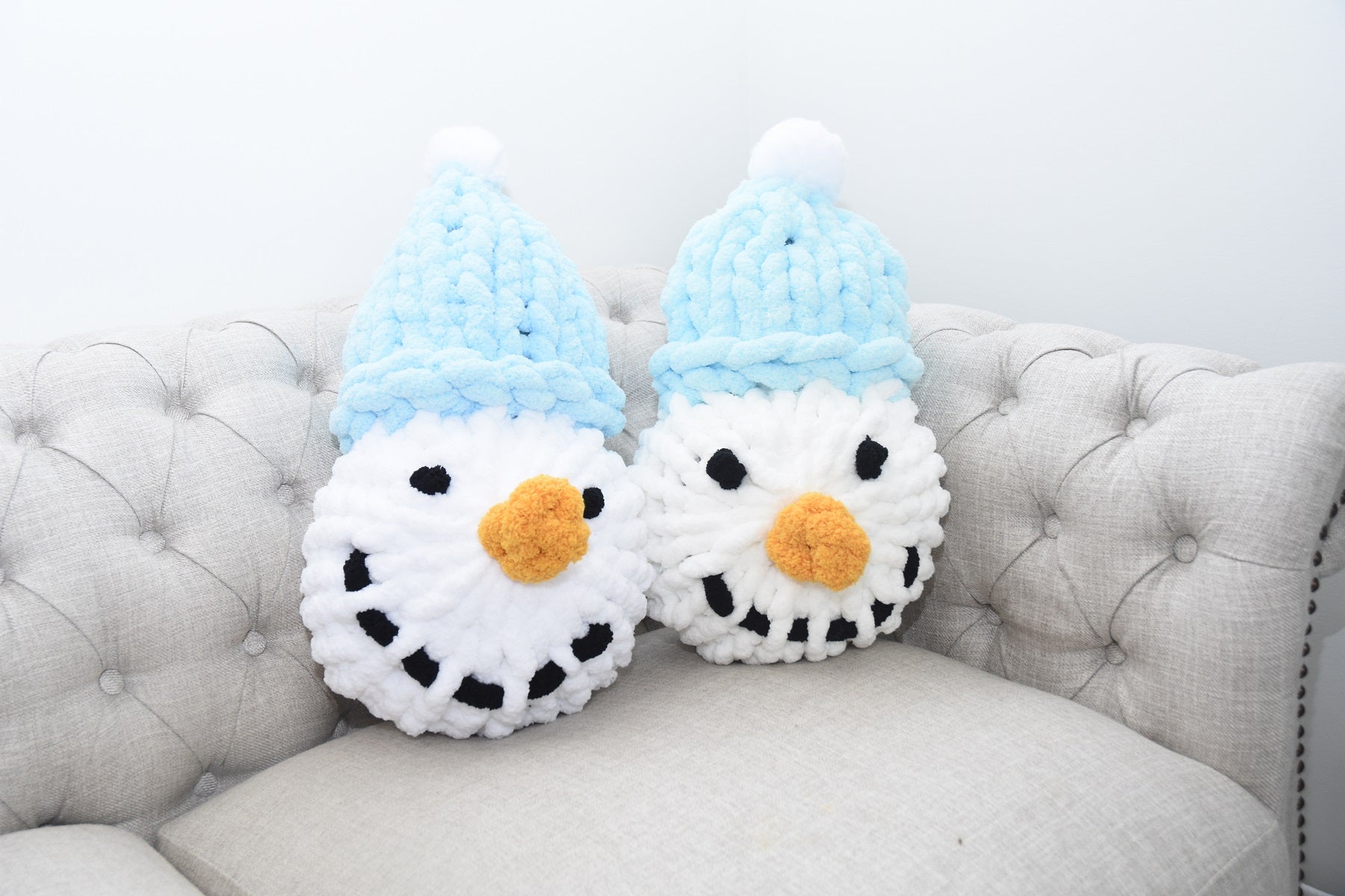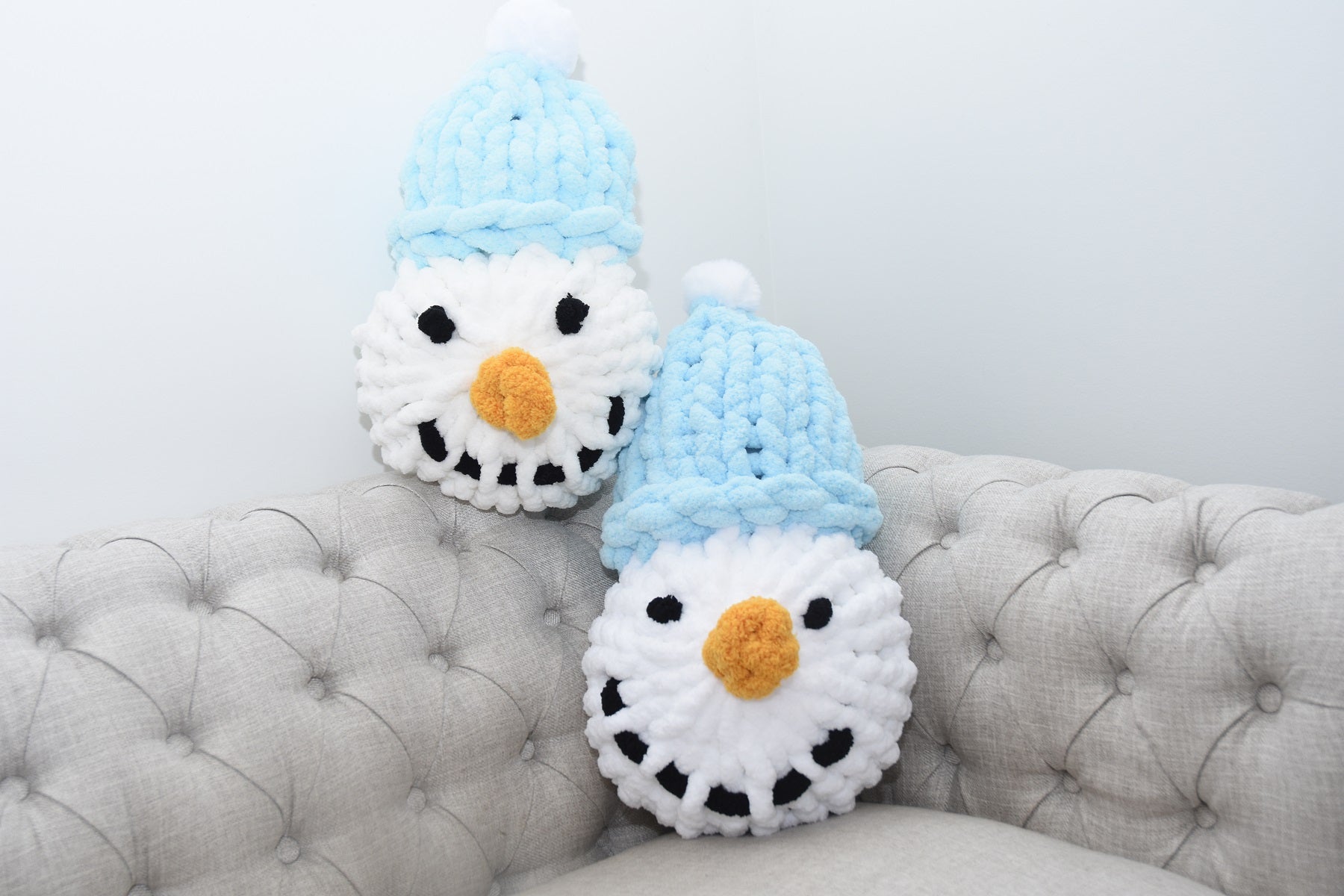 This cute Snowman pillow is made with BeCozi Chunky chenille